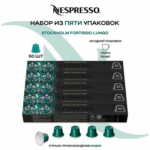 Кофе в капсулах Nespresso Stockholm Fortissio Lungo, 10 кап. в уп., 5 уп.