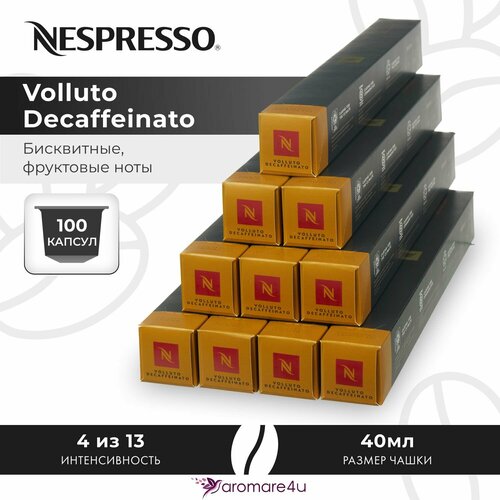 Кофе в капсулах Nespresso Volluto Decaffeinato — Сладкий бисквит с фруктовыми нотами — 10 уп. по 10 капсул