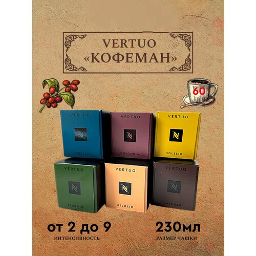 Кофе в капсулах Nespresso набор, VERTUO кофеман, натуральный, молотый кофе в капсулах, для капсульных кофемашин, неспрессо , 60шт