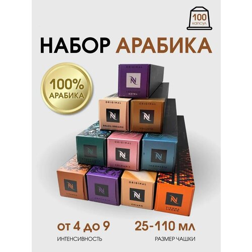 Набор капсул Nespresso Original, арабика, средняя обжарка, 10 вкусов, 100 шт