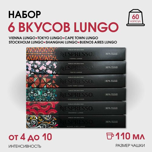 Набор кофе в капсулах для Nespresso 6 Вкусов Lungo 60 капсул