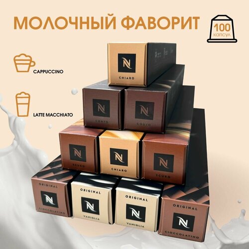 Набор кофе в капсулах для Nespresso Молочный Фаворит 100 капсул