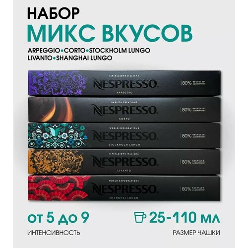Набор кофе в капсулах для Nespresso Микс Вкусов 50 капсул