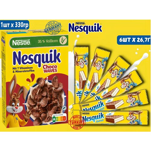Готовый завтрак Nestle Nesquik 1шт /Вафельные батончики Несквик Gofret 6шт