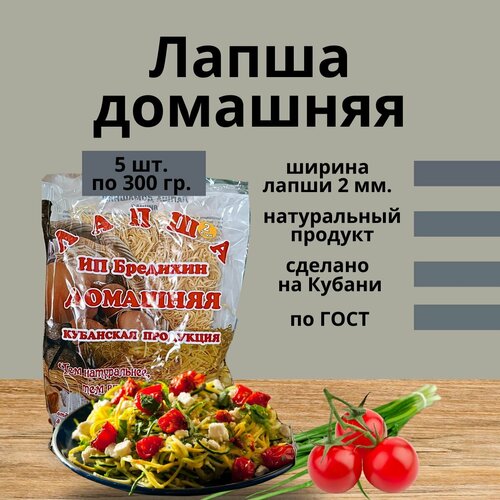 "Яичная лапша домашняя" — 5 штук по 300 грамм, ширина 2 мм