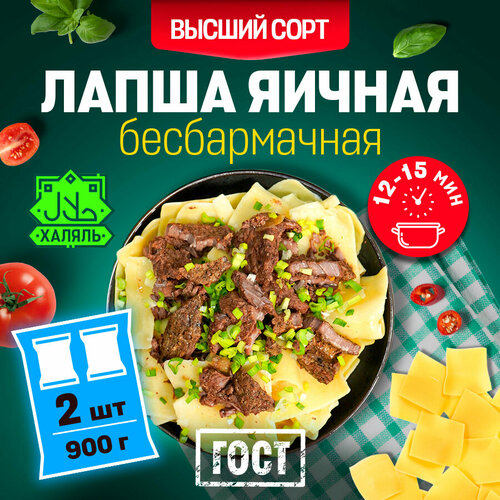 Лапша бесбармачная из твердых сортов пшеницы. Макаронные изделия яичные Набор 2 пачки по 450 г