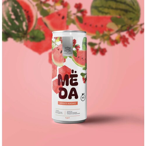 Лимонад "Мёда" Арбуз-Кизил, без сахара, в металлической банке, сильногазированный, 8шт, по 0,33 л