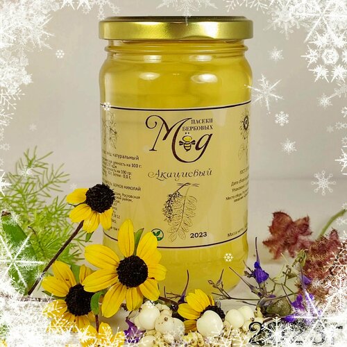 Мед Акациевый 500 г, натуральный Акациевый мёд 2023 г, мед пасеки Берковых