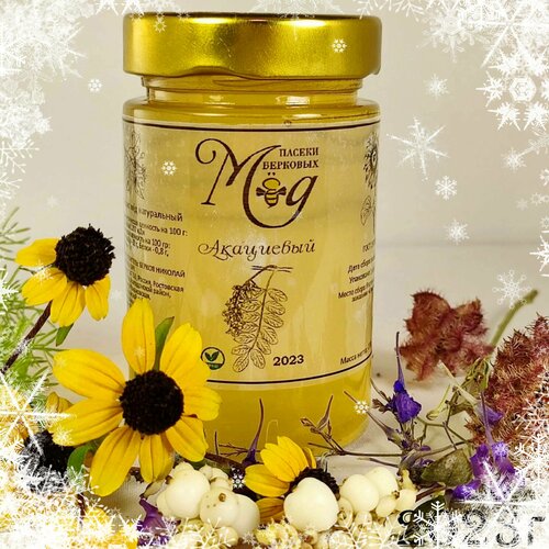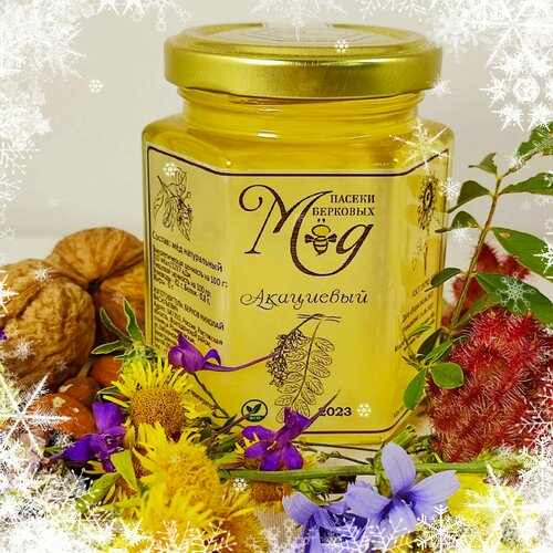 Мед Акациевый 270 г, натуральный Акациевый мед 2023 г, мед пасеки Берковых