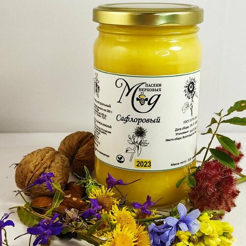 Мёд Сафлоровый 500 г, мёд Американского шафрана, Мёд пасеки Берковых, 2023 год