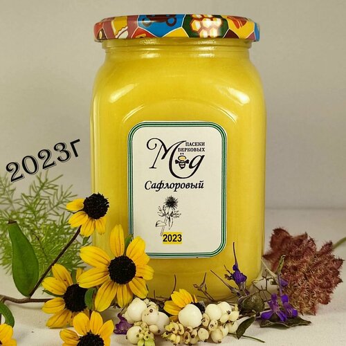 Мёд Сафлоровый 1000 г, мёд Американского шафрана, Мёд пасеки Берковых, 2023 год