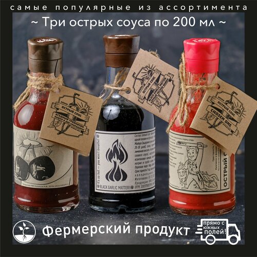 Набор 3 шт х 200 мл острых соусов от КФХ Кузнецов Н. В. (вишня, чеснок, томат)