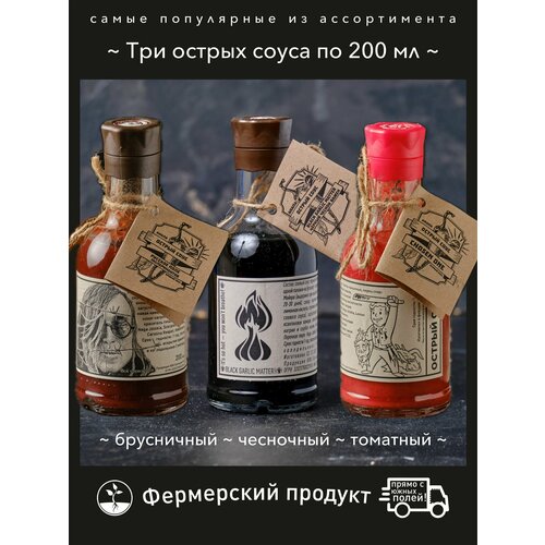 Набор 3х200мл острых соусов от КФХ Кузнецов Н. В. (чеснок-брусника-томат)