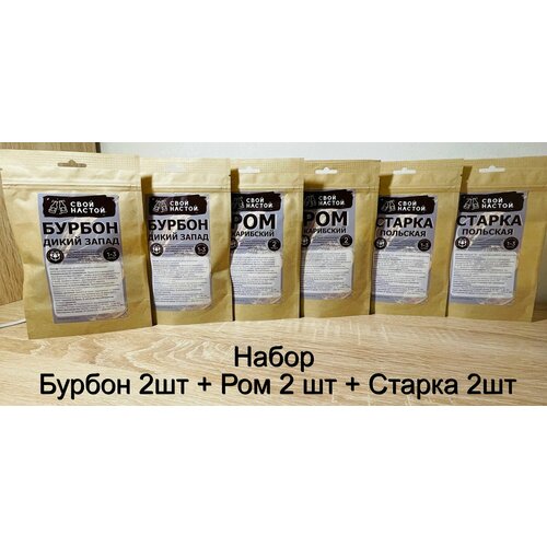 Набор настоек для самогона Бурбон Дикий Запад+Ром Карибский+Старка Польская "Свой Настой" набор из 6 шт