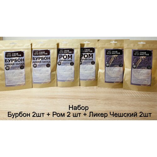 Набор настоек для самогона Бурбон Дикий Запад, Ром Карибский, Ликер Чешский "Свой Настой" набор из 6 шт