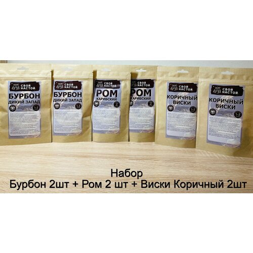 Набор настоек для самогона Бурбон Дикий Запад+Ром Карибский+Коричный Виски "Свой Настой" набор из 6шт
