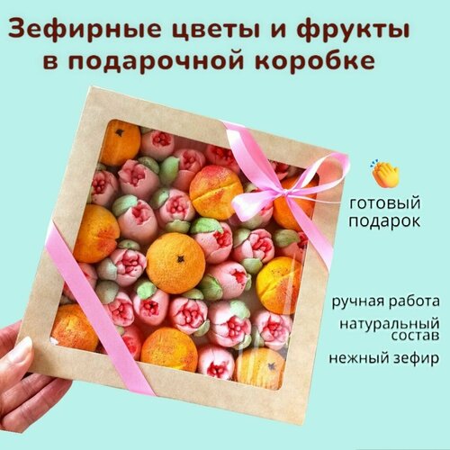 Набор цветов и фруктов из зефира в подарочной коробке