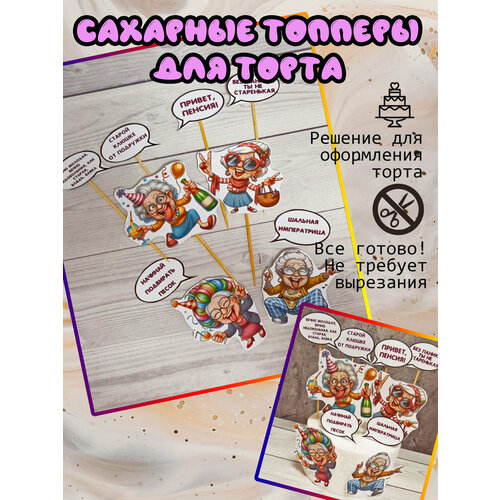 Набор топперов Привет пенсия. Большой набор. Украшение для торта