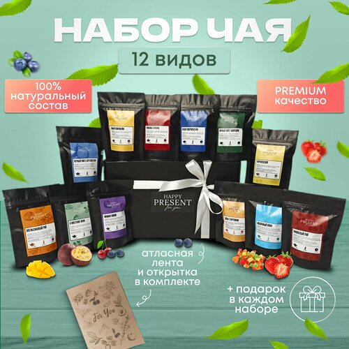 Набор чая подарочный 12 в 1 черного зеленого подарок на новый год день рождения рождество маме