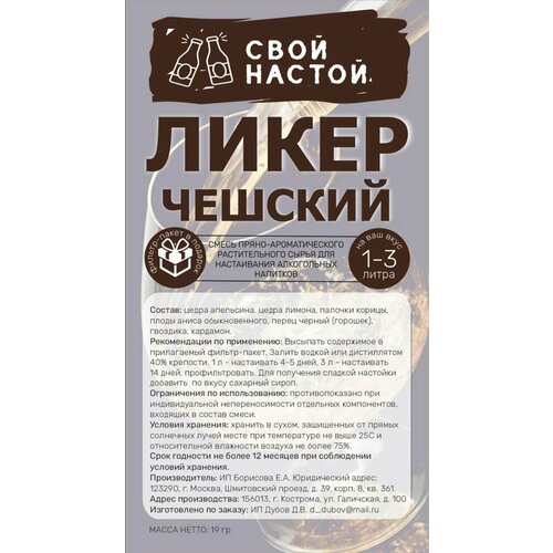 Настойка для самогона Ликер Чешский "Свой Настой"