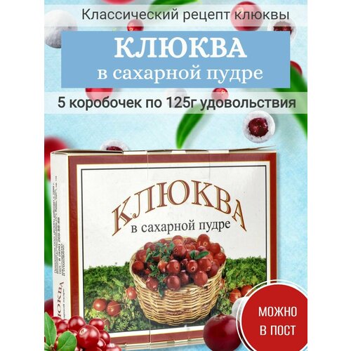 Натуральные ягоды клюквы в сахарной пудре 125г драже ягодное 5 упаковок.
