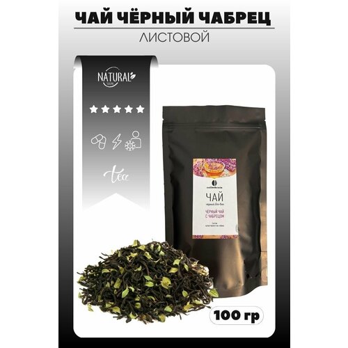 Натуральный Листовой Чай Черный с Чабрецом 100 гр. черный чай, чайный напиток, рассыпной, чабрец