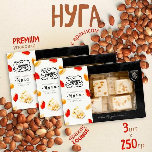 Нуга с арахисом "Lounge", натуральный состав, 3 упаковки по 250 гр.