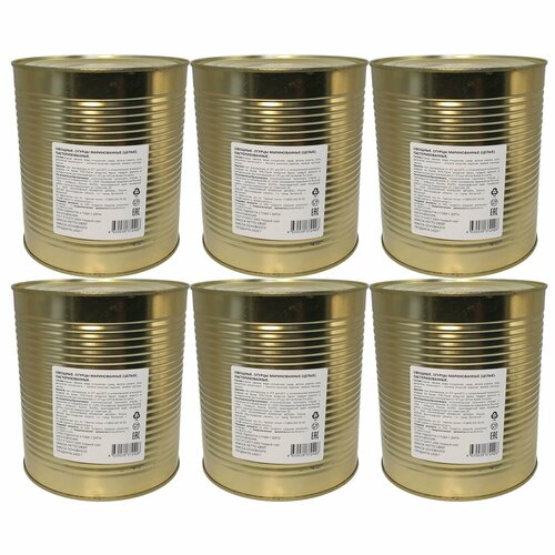 Огурцы маринованные целые (9-12 см), ГОСТ, 6 банок по 2800 г