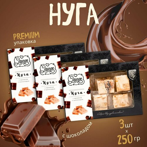Нуга с шоколадом "Lounge" вкусная, натуральный состав, 3х250 гр.