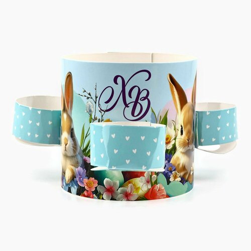 Ободок Кролики на Пасху, бумага, голубой, для кулича, 41,6 x 10 см