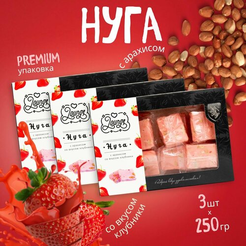 Нуга с арахисом со вкусом клубники "Lounge", натуральный состав, 3х250 гр.