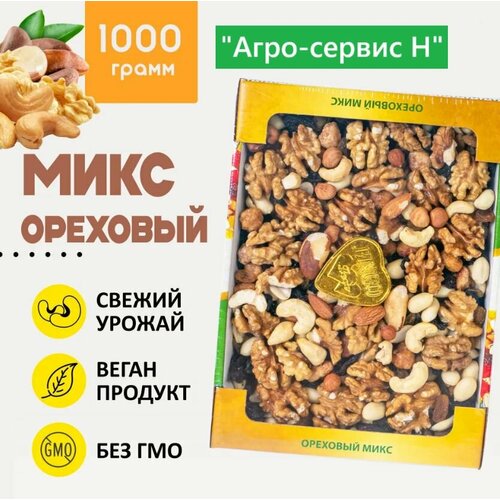 Ореховый микс (грецкий орех, кешью, фундук, миндаль, изюм, арахис), 1кг.