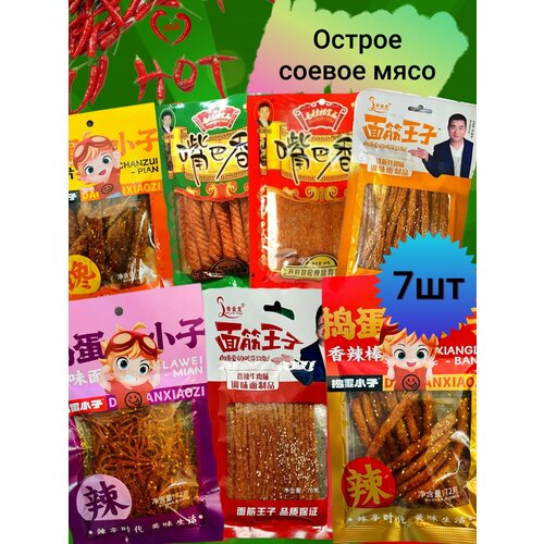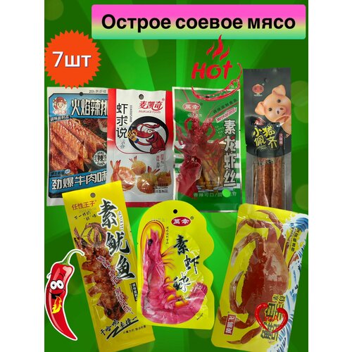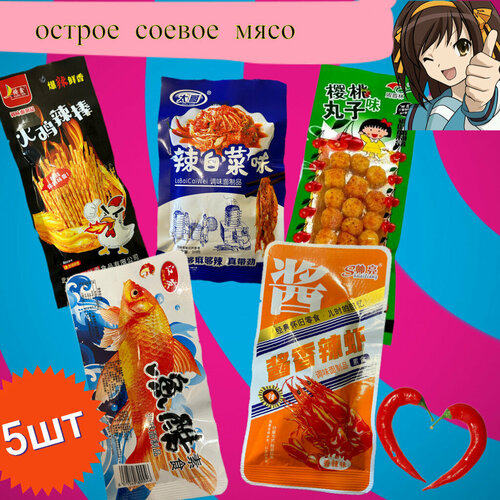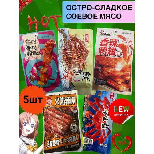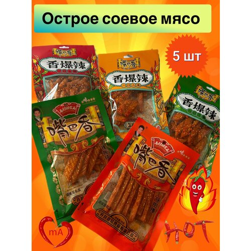 Острое соевое мясо ассорти вкусов 5 шт, острые снеки