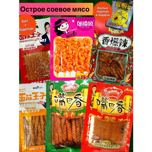 Острое соевое мясо, китайские острые закуски, шашлычки 6шт и кислые леденцы в подарок