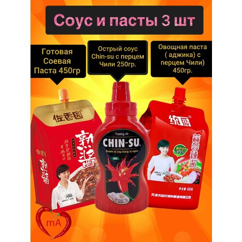 Острый соус Chin-Su, соевая паста, аджика с перцем Чили 3 шт.