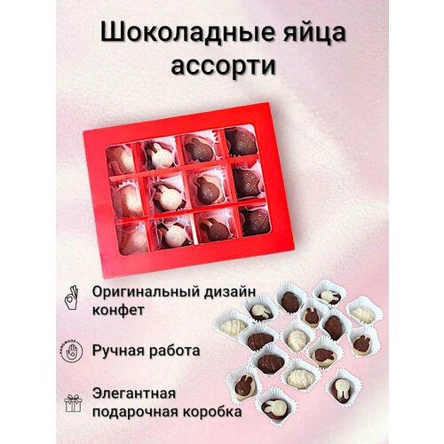 Пасхальный набор шоколадные яйца"Зайцы"с клюквой и миндалем, конфеты ассорти, ручная работа, подарок на Пасху, день рождения