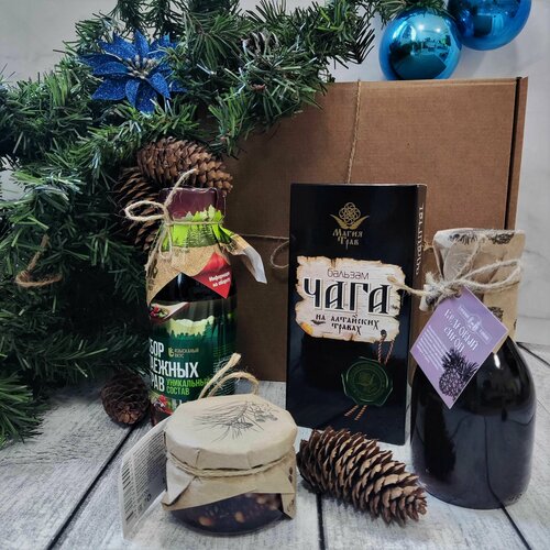 Подарочный набор Алтайский бальзам + Таежное варенье с кедровым орехом + 2 сиропа из таежных трав