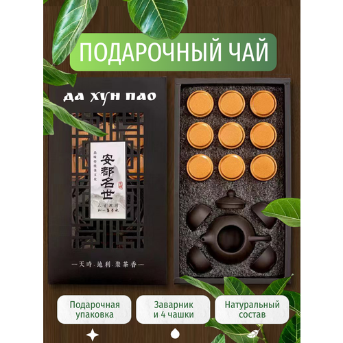 Подарочный набор китайского листового чая Да Хун Пао с чайником и чашками в красивой коробке