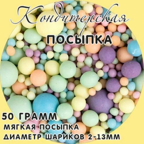 Посыпка кондитерская декор, жемчуг, матовое, Желт, Оранж, Голубой, Роз, Сирень, Изумруд для куличей, тортов 88М 50 гр