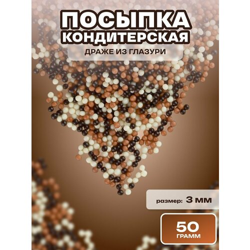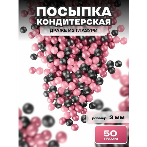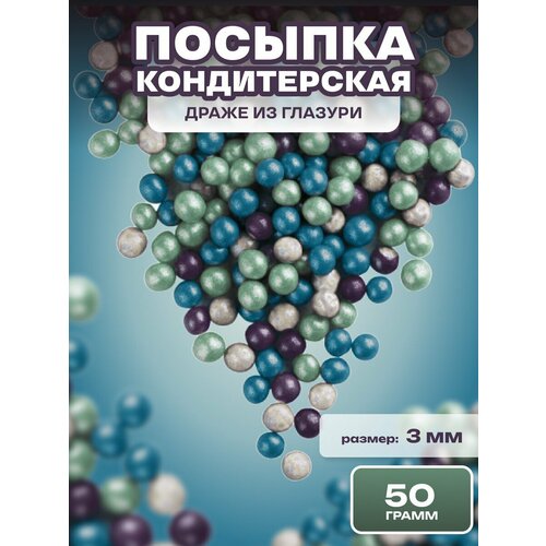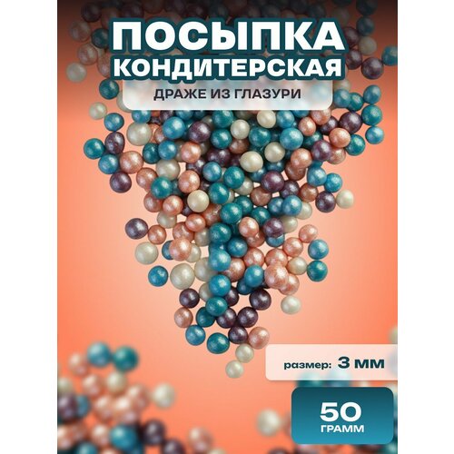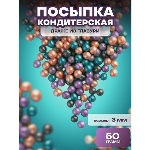Посыпка кондитерская шарики 3 мм, драже рисовое в глазури, украшение для торта, выпечки, куличей № 118, 50 гр.