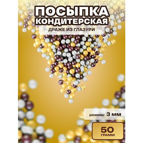 Посыпка кондитерская шарики 3 мм, драже рисовое в глазури, украшение для торта, выпечки, куличей № 115, 50 гр.