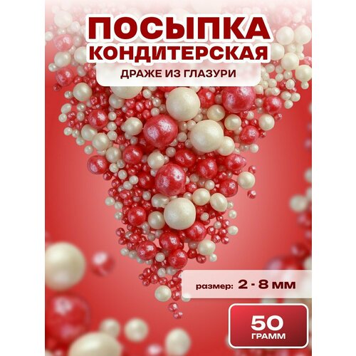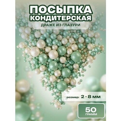 Посыпка кондитерская шарики, драже рисовое в глазури, украшение для торта, выпечки, куличей № 761, 50 гр.
