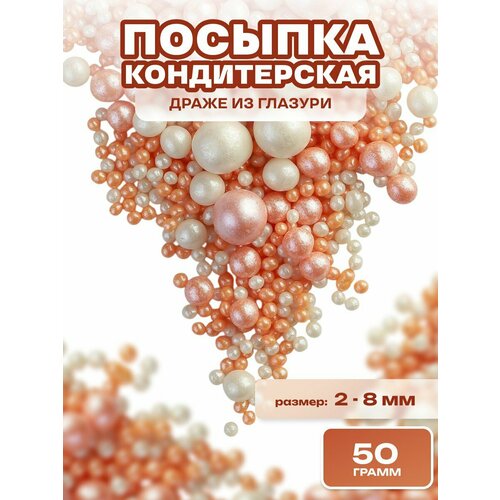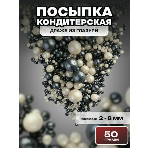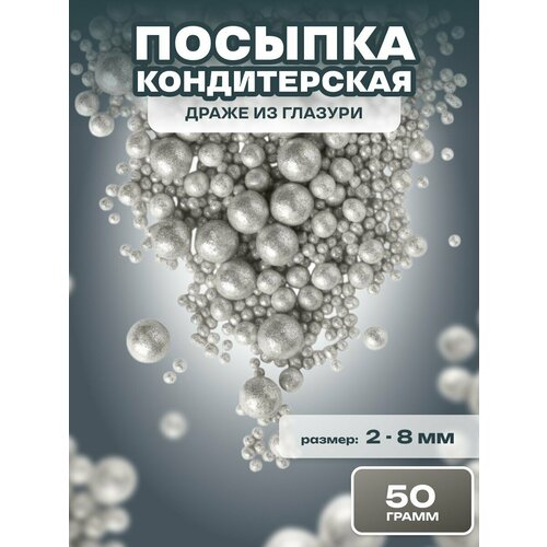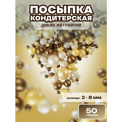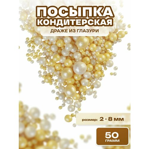 Посыпка кондитерская шарики, драже рисовое в глазури, украшение для торта, выпечки, куличей № 204, 50 гр.