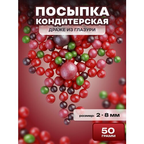 Посыпка кондитерская шарики, драже рисовое в глазури, украшение для торта, выпечки, куличей № 190, 50 гр.