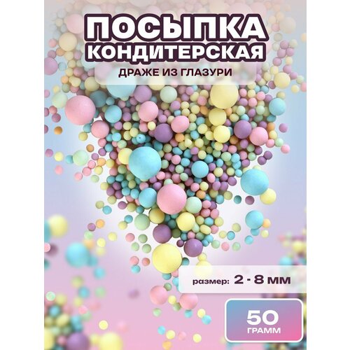 Посыпка кондитерская шарики, драже рисовое в глазури, украшение для торта, выпечки, куличей № 194, 50 гр.