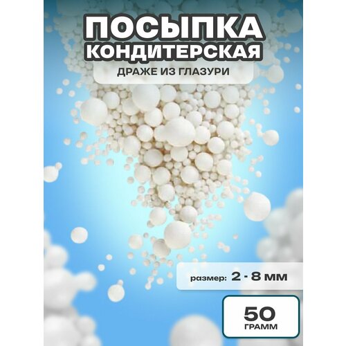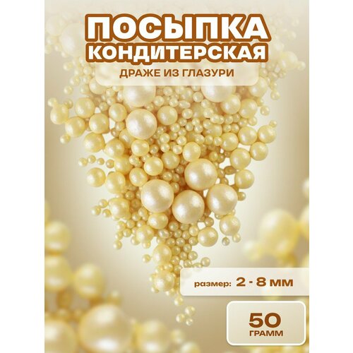 Посыпка кондитерская шарики, драже рисовое в глазури, украшение для торта, выпечки, куличей № 200, 50 гр.