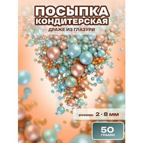 Посыпка кондитерская шарики, драже рисовое в глазури, украшение для торта, выпечки, куличей № 241, 50 гр.