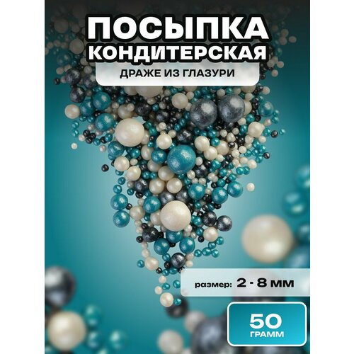 Посыпка кондитерская шарики, драже рисовое в глазури, украшение для торта, выпечки, куличей № 295М, 50 гр.