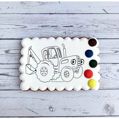 Пряник-раскраска Синий трактор. Пряники имбирные марки "Кузовок радости"