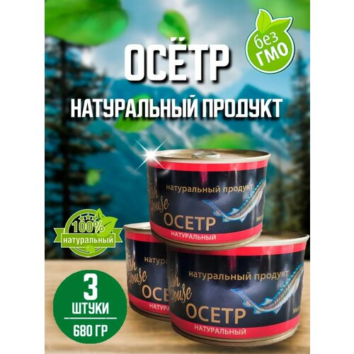 Рыбные консервы ООО "Астраханский рыбзавод", осетр в собственном соку, 3 шт по 245 грамм